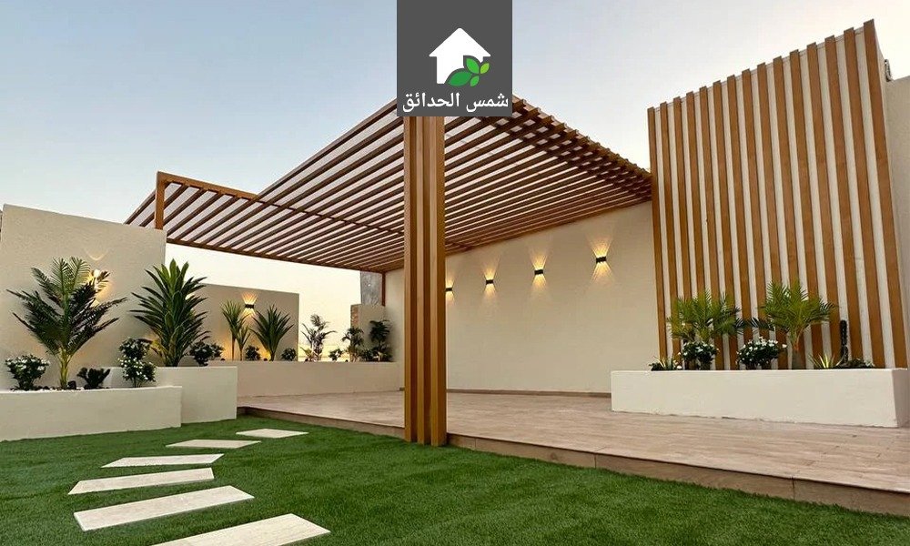 - البرجولات والمظلات: توفر هذه الهياكل حماية مثالية من أشعة الشمس والأمطار، مما يسمح بالاستمتاع بالجلسة في مختلف الظروف الجوية، يمكن تصميمها من الخشب أو المعدن وتغطيتها بأقمشة مقاومة للماء أو تركها لتنمو عليها النباتات المتسلقة.